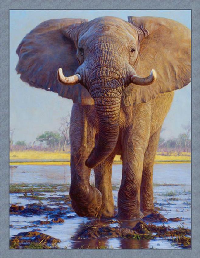 Immerse yourself in the wild majesty of Africa with “Kiongozi” — a digitally printed 36" fabric panel by renowned wildlife artist John Banovich, licensed through Ansada Licensing Group, LLC.