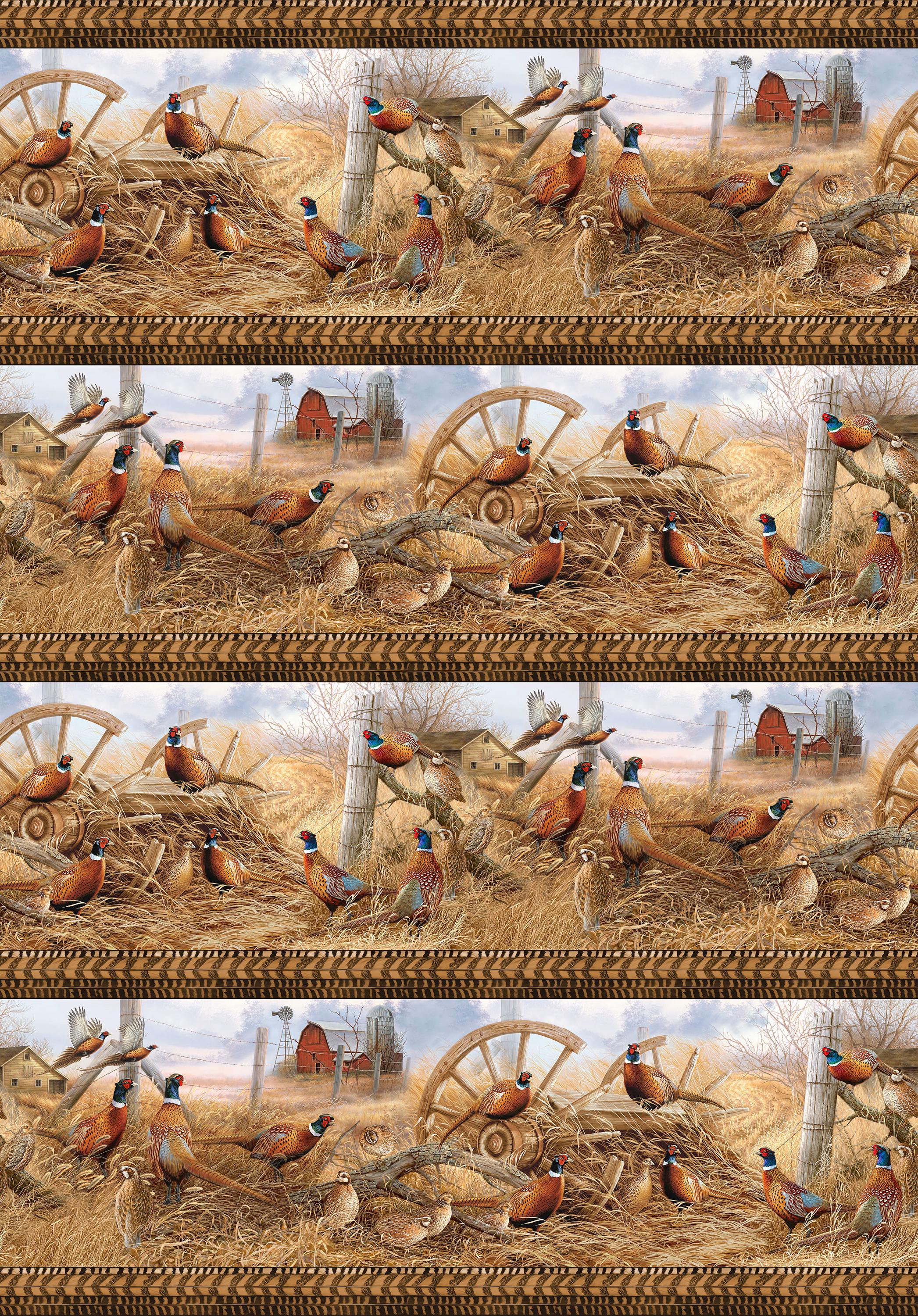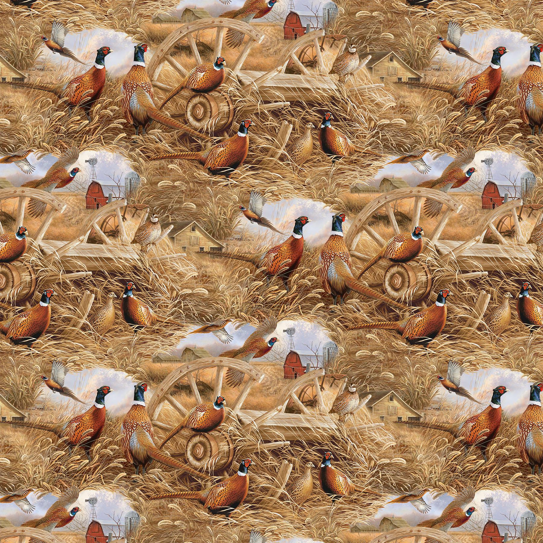 At the heart of the line is the Pheasant Grove Panel (DP28300-37) — a stunning wildlife centerpiece that pairs beautifully with an array of coordinating prints in rust, tan, beige multi, and blue. Ideal for quilts, wall art, or lodge-style décor, this collection blends realism and artistry in perfect harmony.