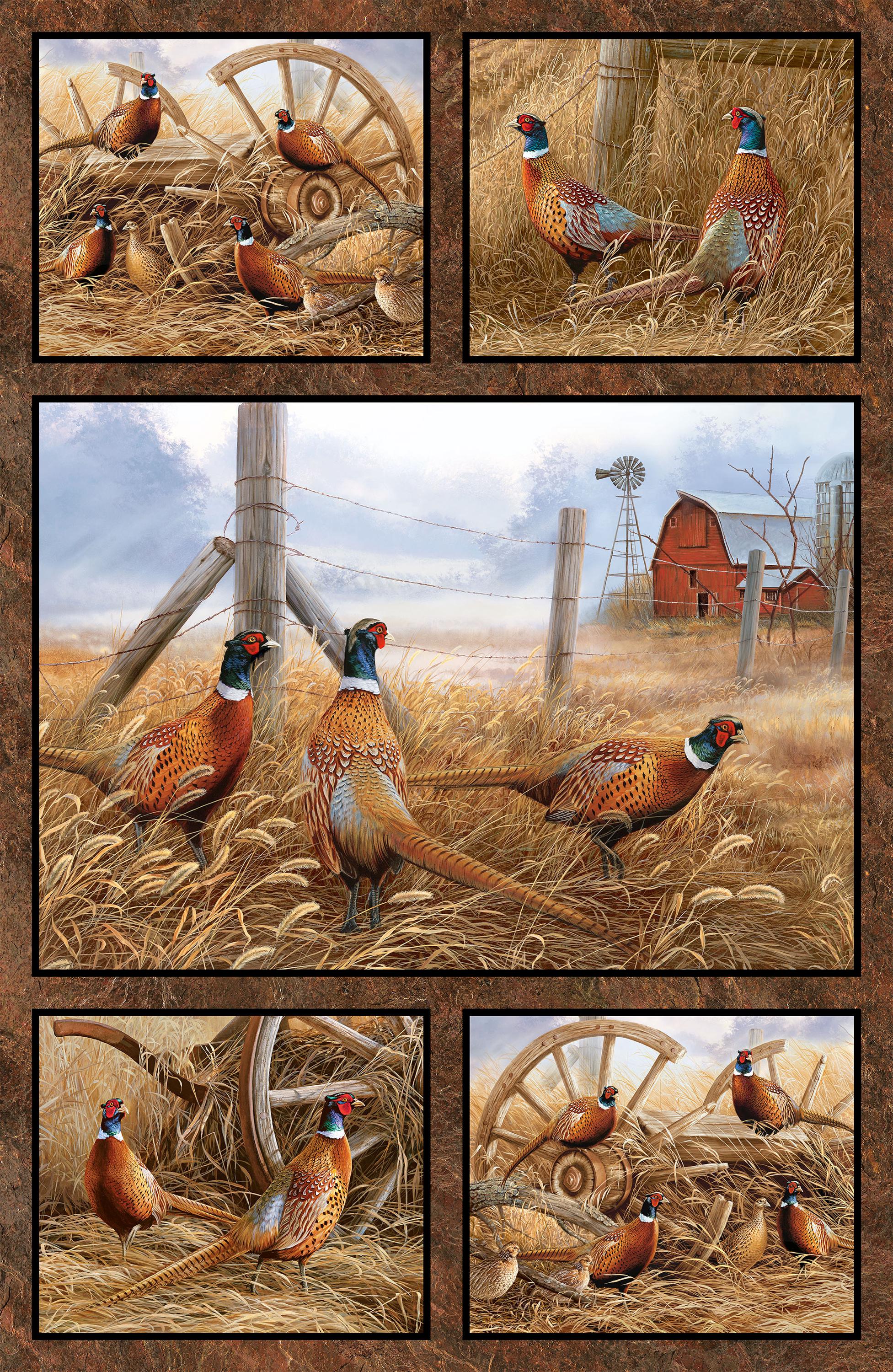 At the heart of the line is the Pheasant Grove Panel (DP28300-37) — a stunning wildlife centerpiece that pairs beautifully with an array of coordinating prints in rust, tan, beige multi, and blue. Ideal for quilts, wall art, or lodge-style décor, this collection blends realism and artistry in perfect harmony.