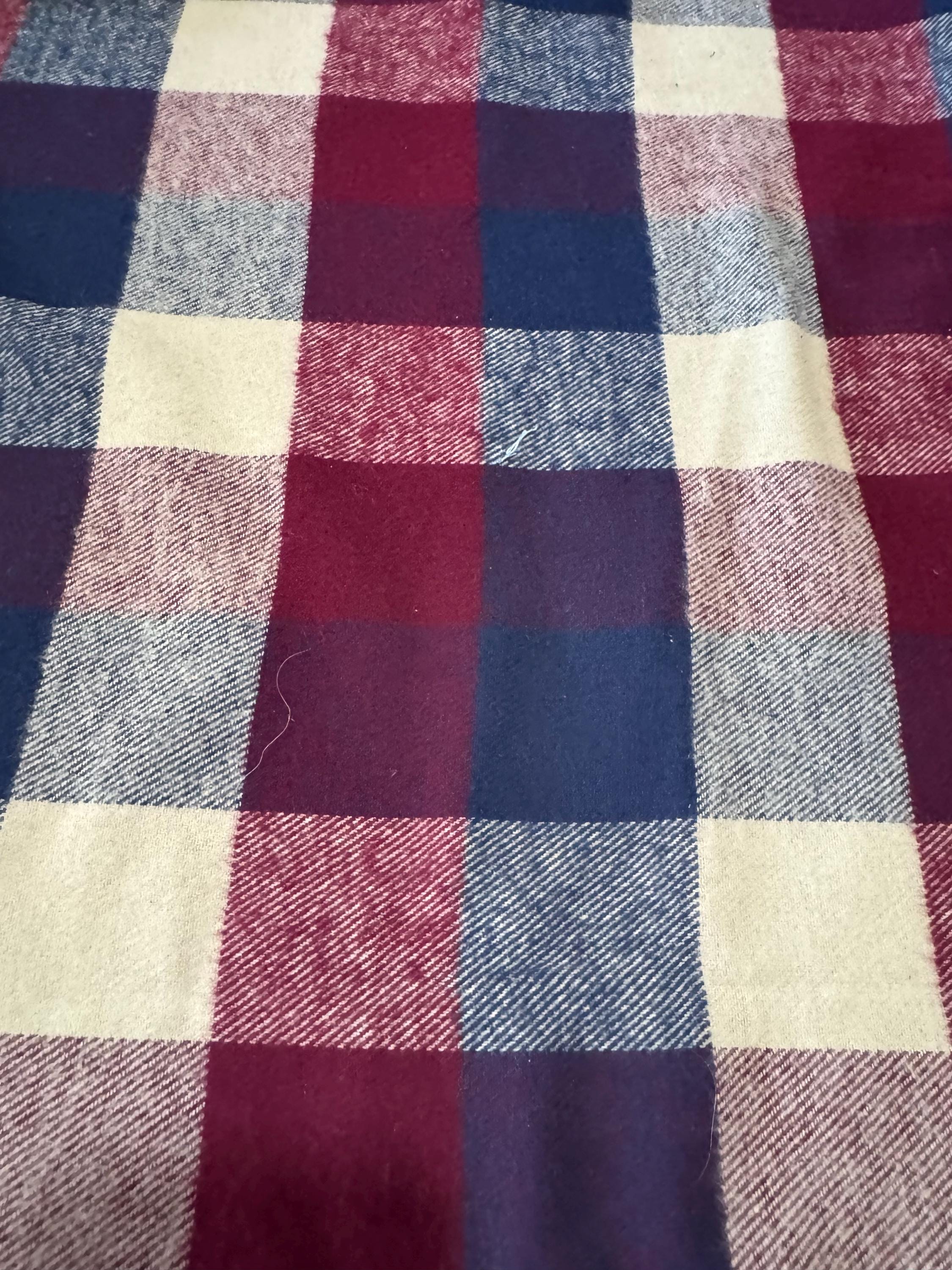 Wrap yourself in cozy comfort with this soft, brushed plaid flannel featuring a classic navy, burgundy, and cream check. Perfect for sewing garments, pajamas, shirts, winter accessories, quilts, and rustic home décor.