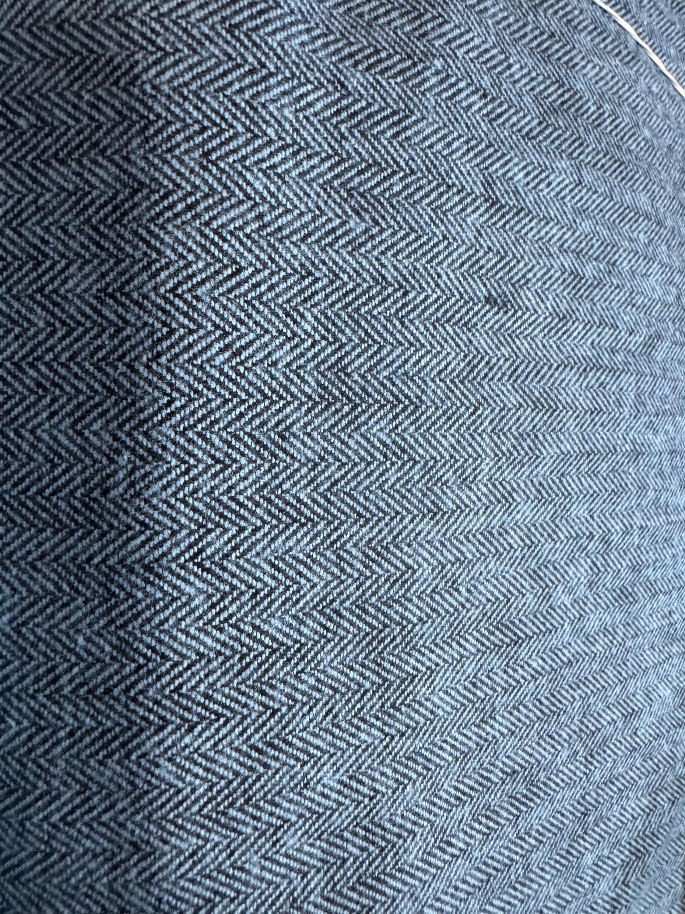 Give your projects a timeless, sophisticated look with this beautiful light blue herringbone woven fabric. The subtle zig-zag pattern adds texture and depth without overwhelming your design — perfect for apparel, bags, home décor, and crafting.