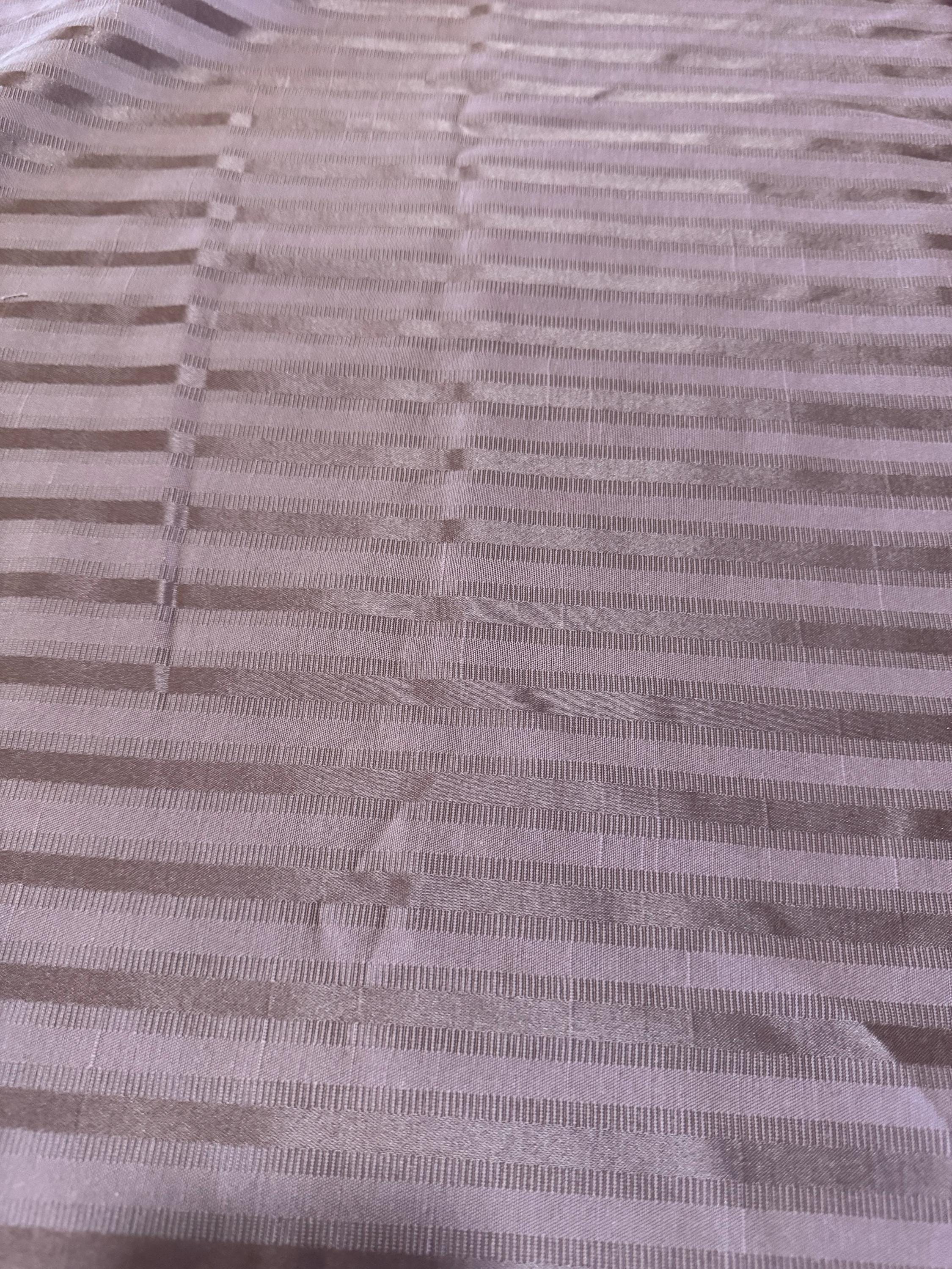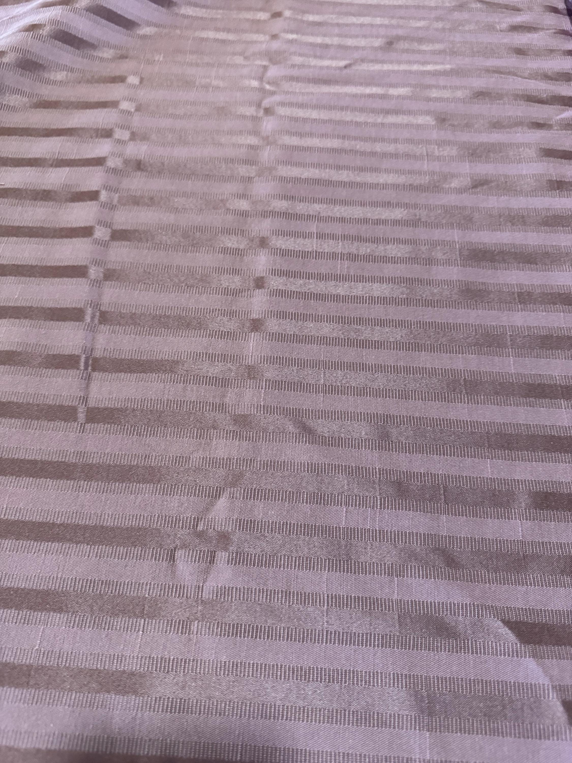 A beautiful mauve designer fabric featuring alternating woven satin-finish stripes. Elegant sheen, soft hand, and perfect for apparel, décor accents, table runners, crafts, and special-occasion sewing.