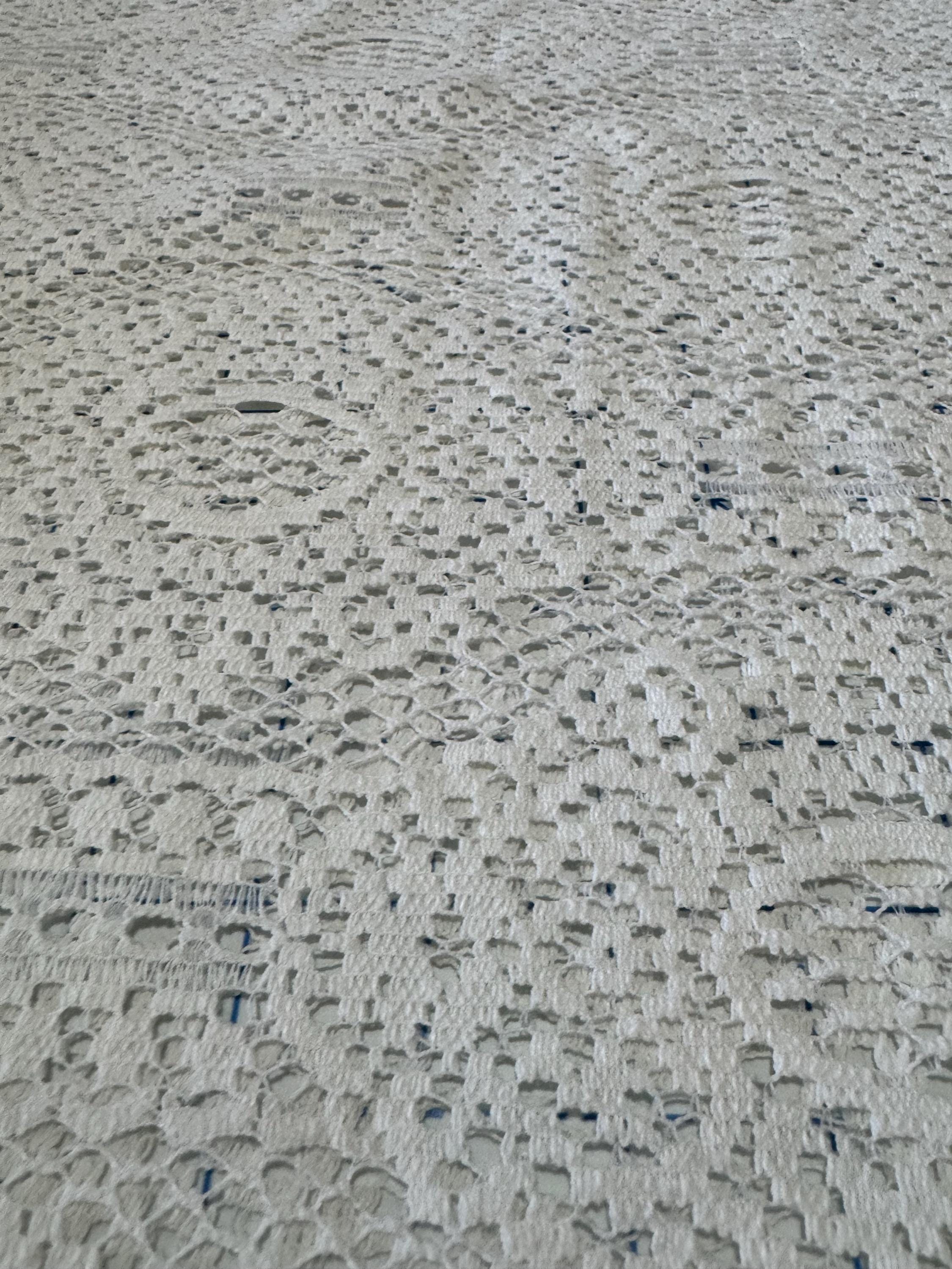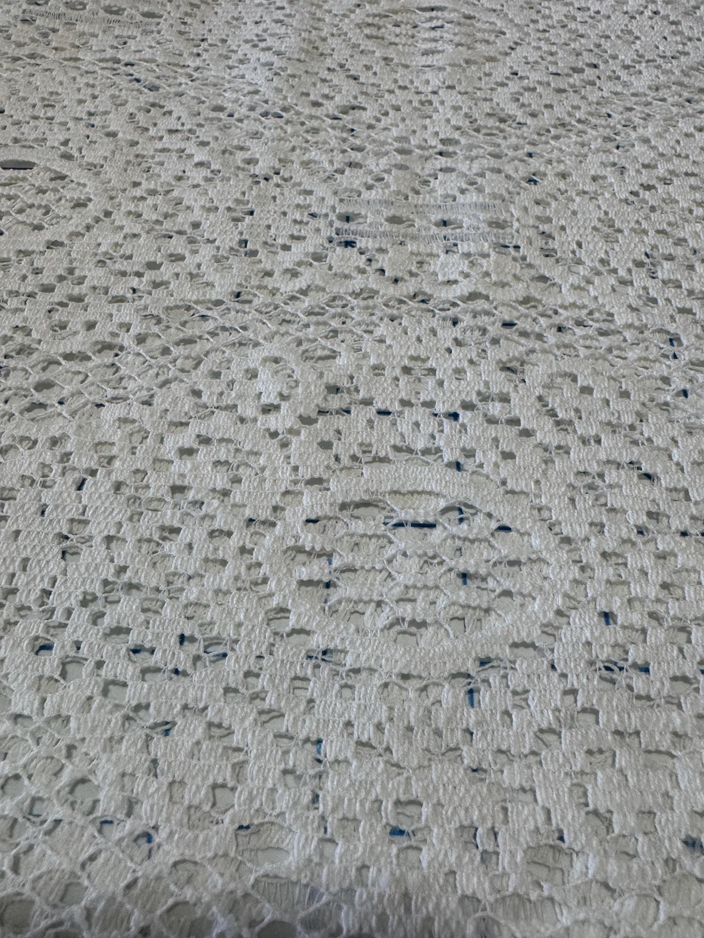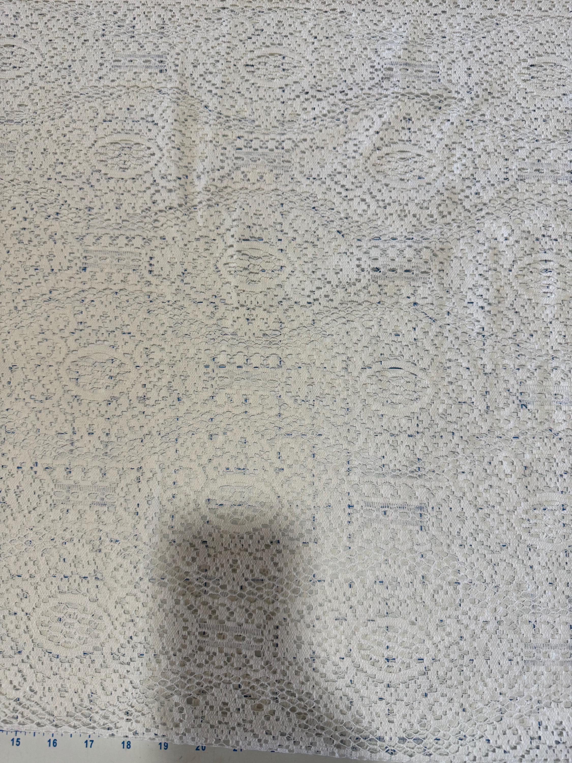 This elegant white lace fabric features a beautifully textured open-weave design with soft geometric and floral motifs. Perfect for overlays, home décor accents, apparel details, costumes, and craft projects. Lightweight with a delicate drape, ideal for adding dimension and sophistication to any creation. Sold by the yard with consecutive cuts available.