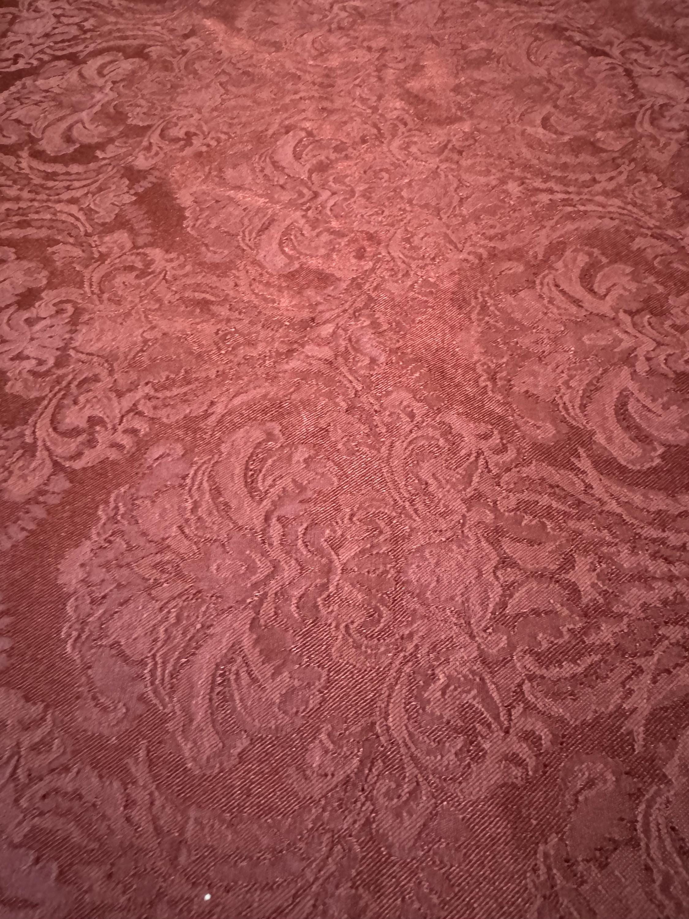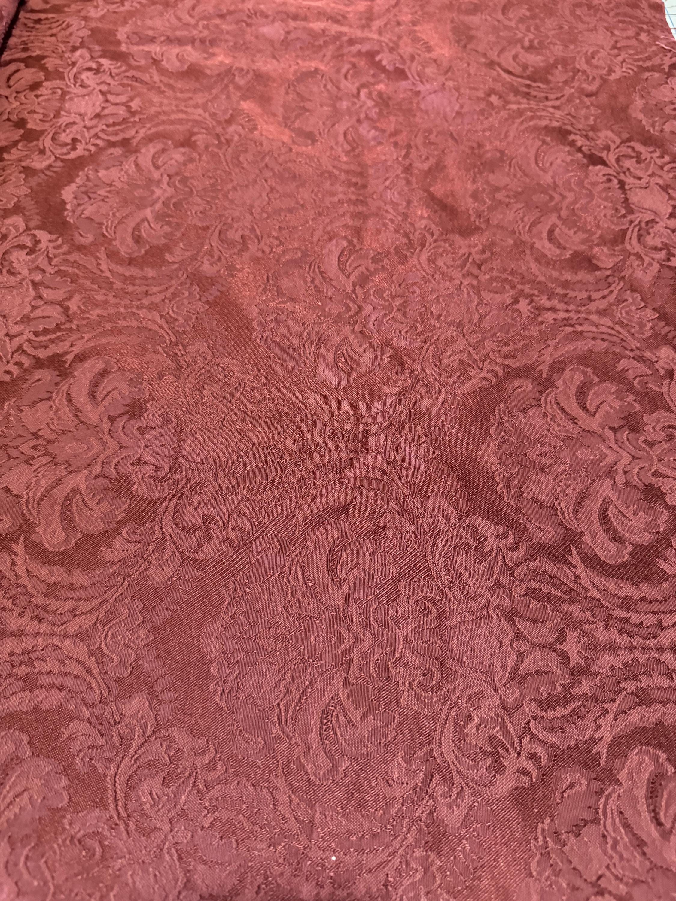 Bring timeless elegance to your sewing and décor projects with this rich burgundy damask jacquard fabric. The tone-on-tone scroll pattern is woven directly into the fabric, giving it a sophisticated texture and a designer look.