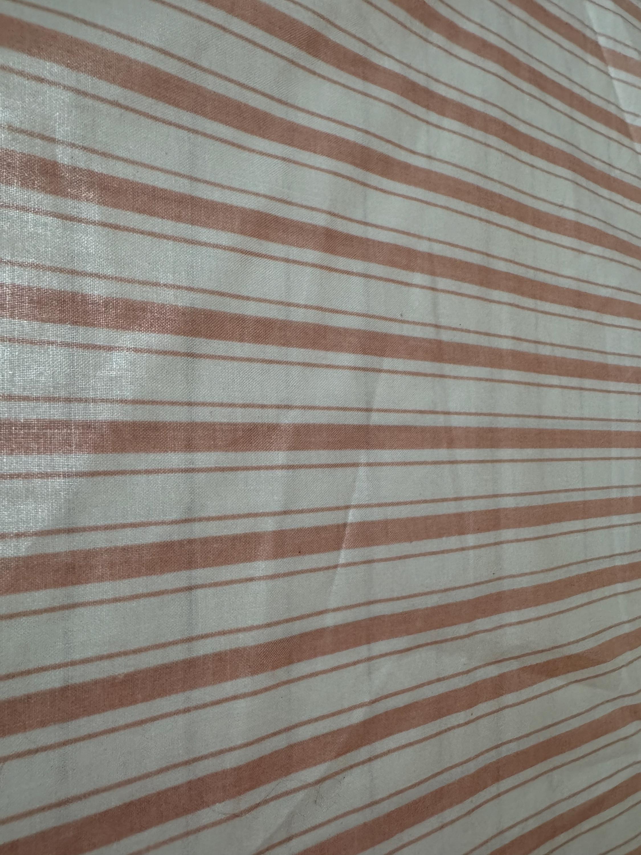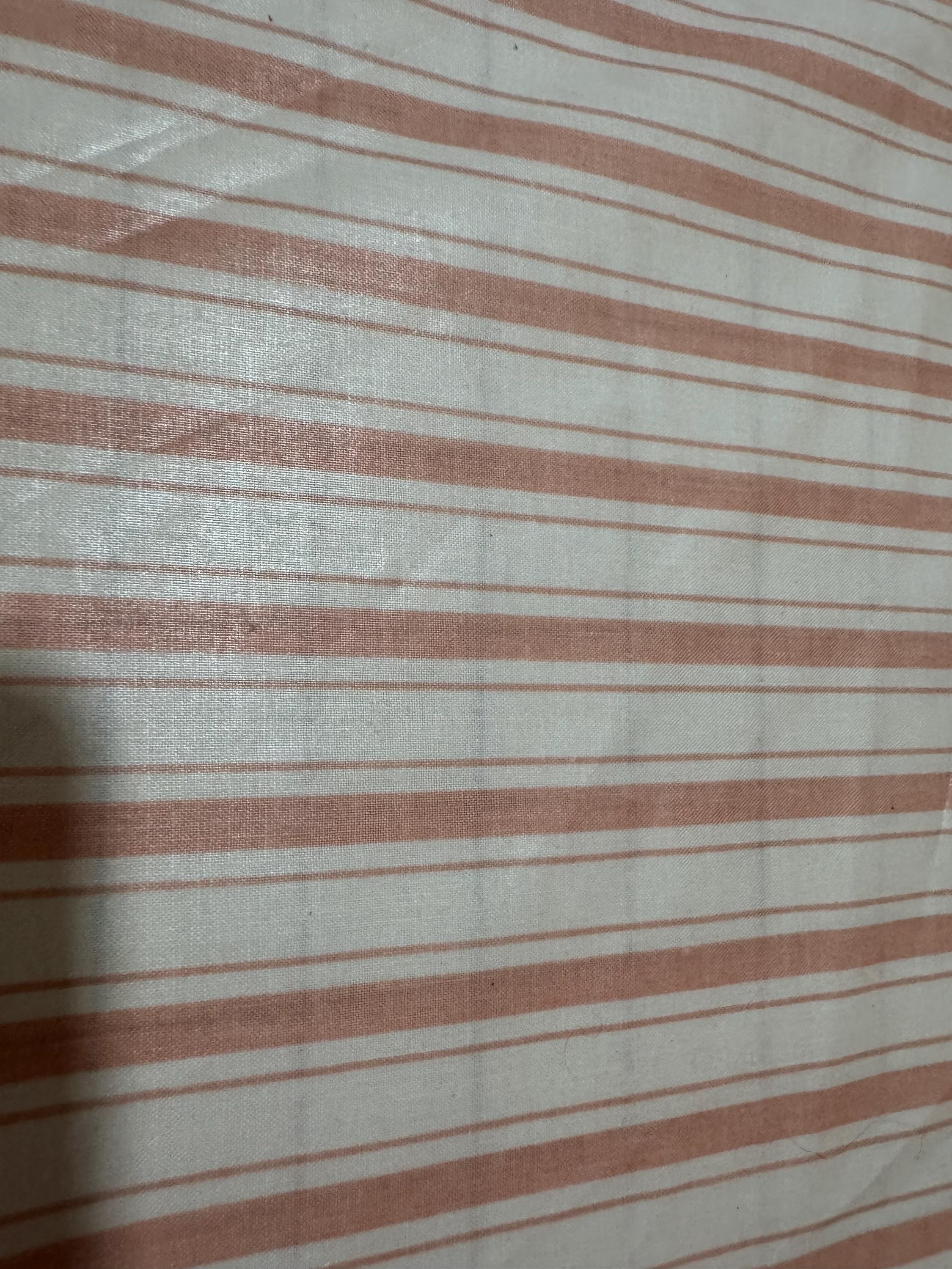 Bring timeless charm to your sewing or décor project with this authentic Waverly “Candy Stripe” cotton fabric. Featuring classic peach-toned stripes on a warm ivory background, this screen-printed fabric has a soft sheen and a beautifully smooth finish. Perfect for aprons, table linens, curtains, pillows, crafts, quilting accents, tote linings, and vintage-inspired sewing projects.