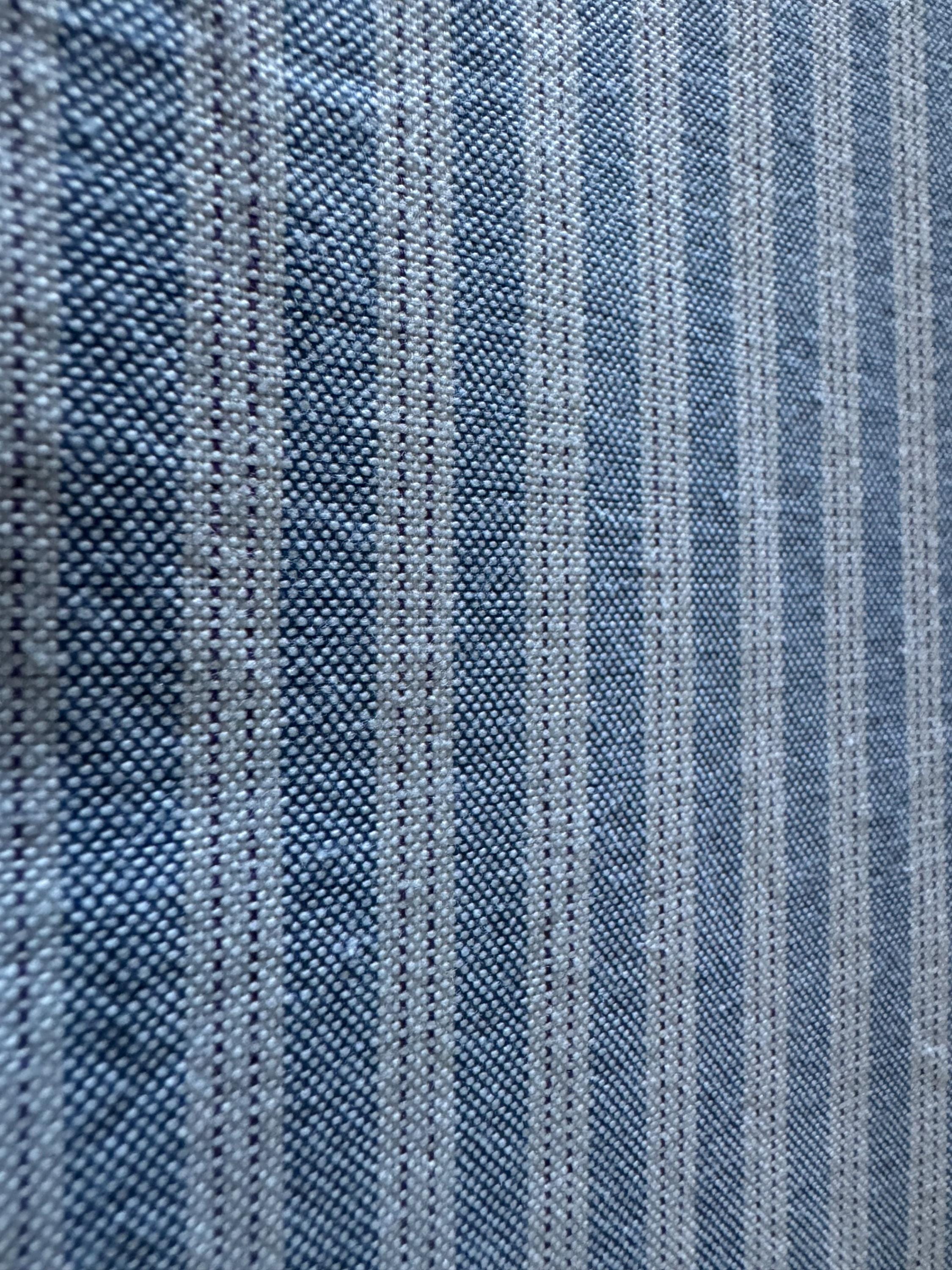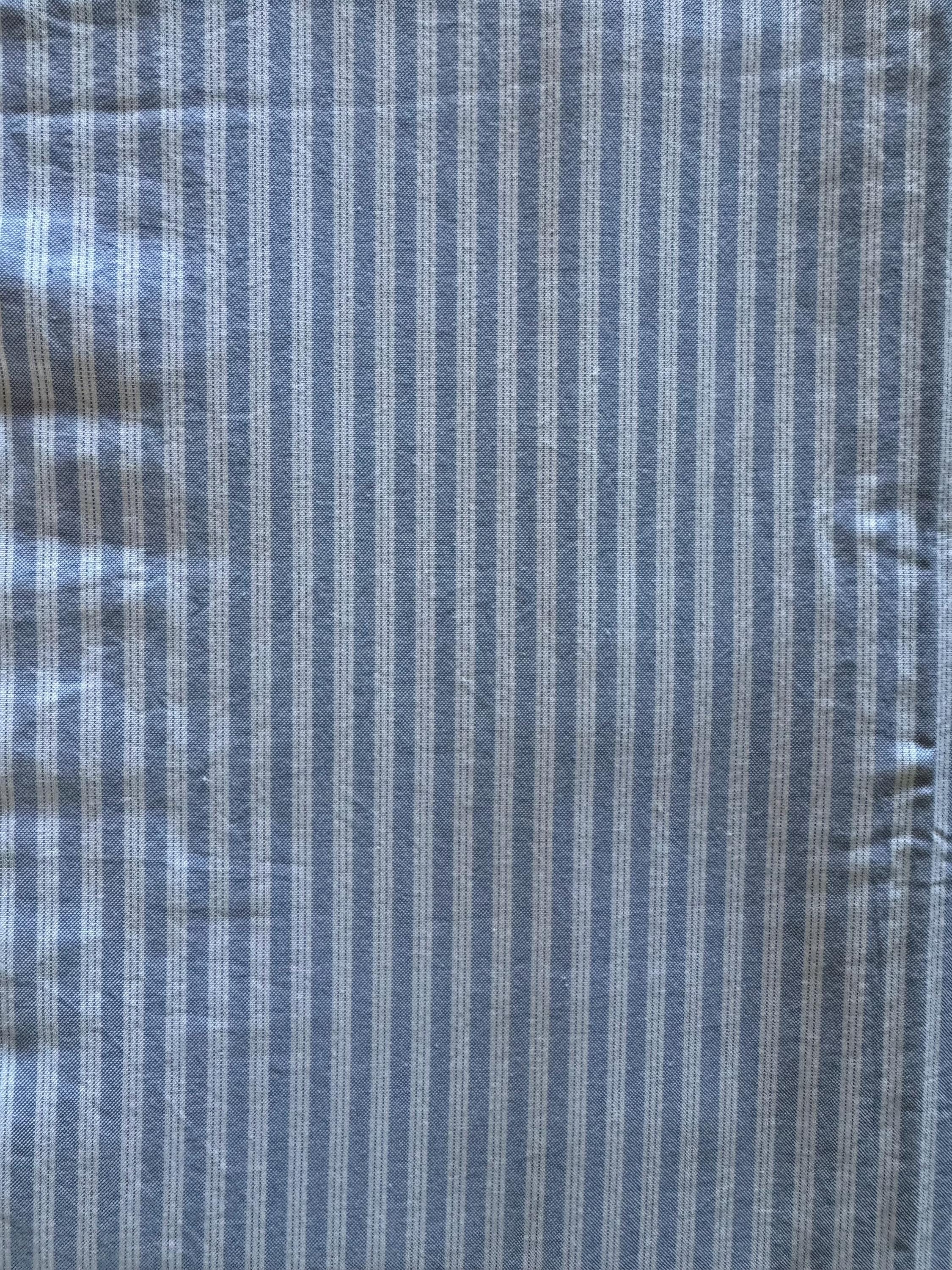 Bring classic texture and clean design to your next sewing project with this blue and white stripe fabric. The soft vertical stripe adds structure without overwhelming your pattern — perfect for quilts, binding, farmhouse décor, table runners, bags, and apparel accents.