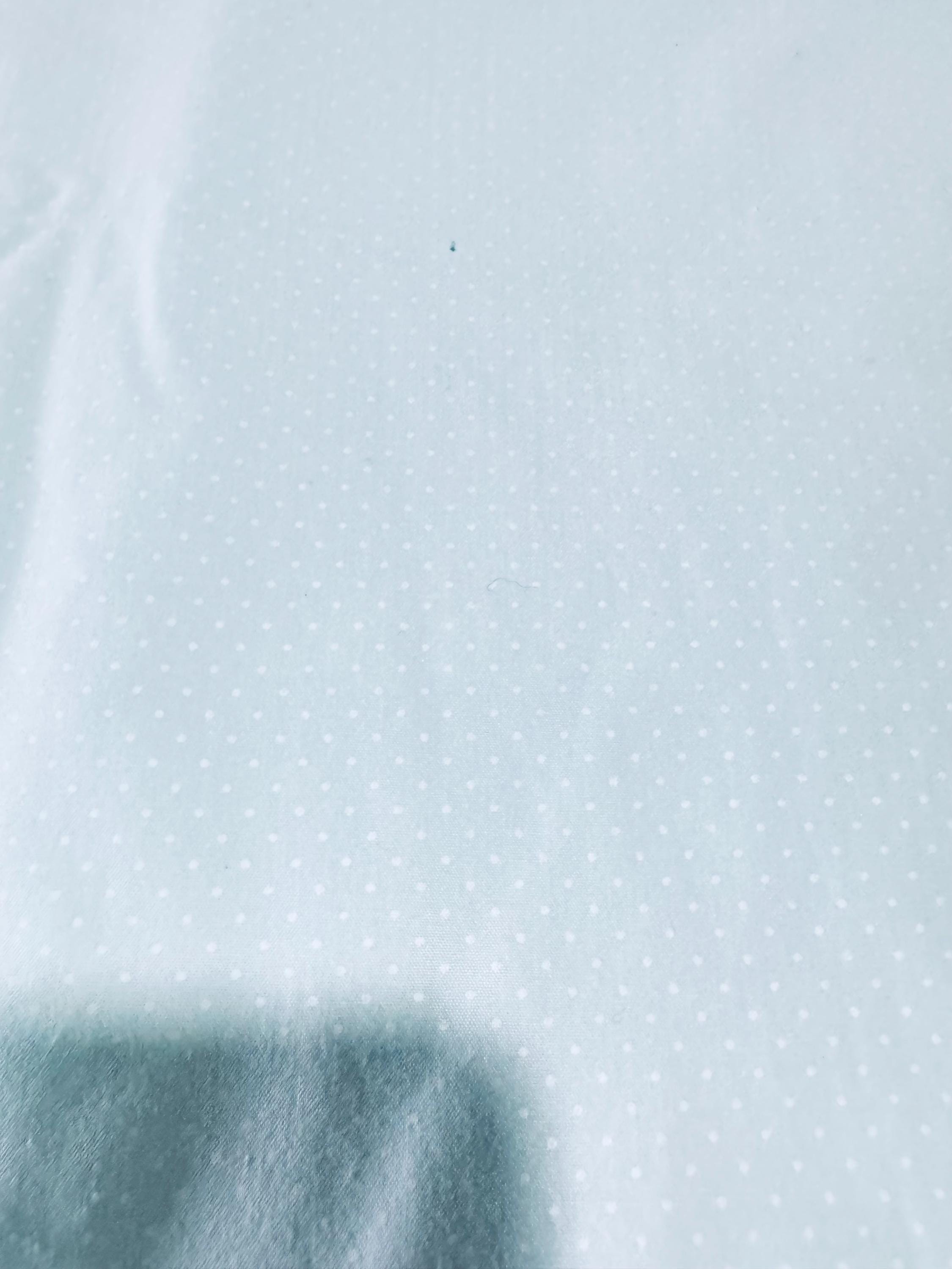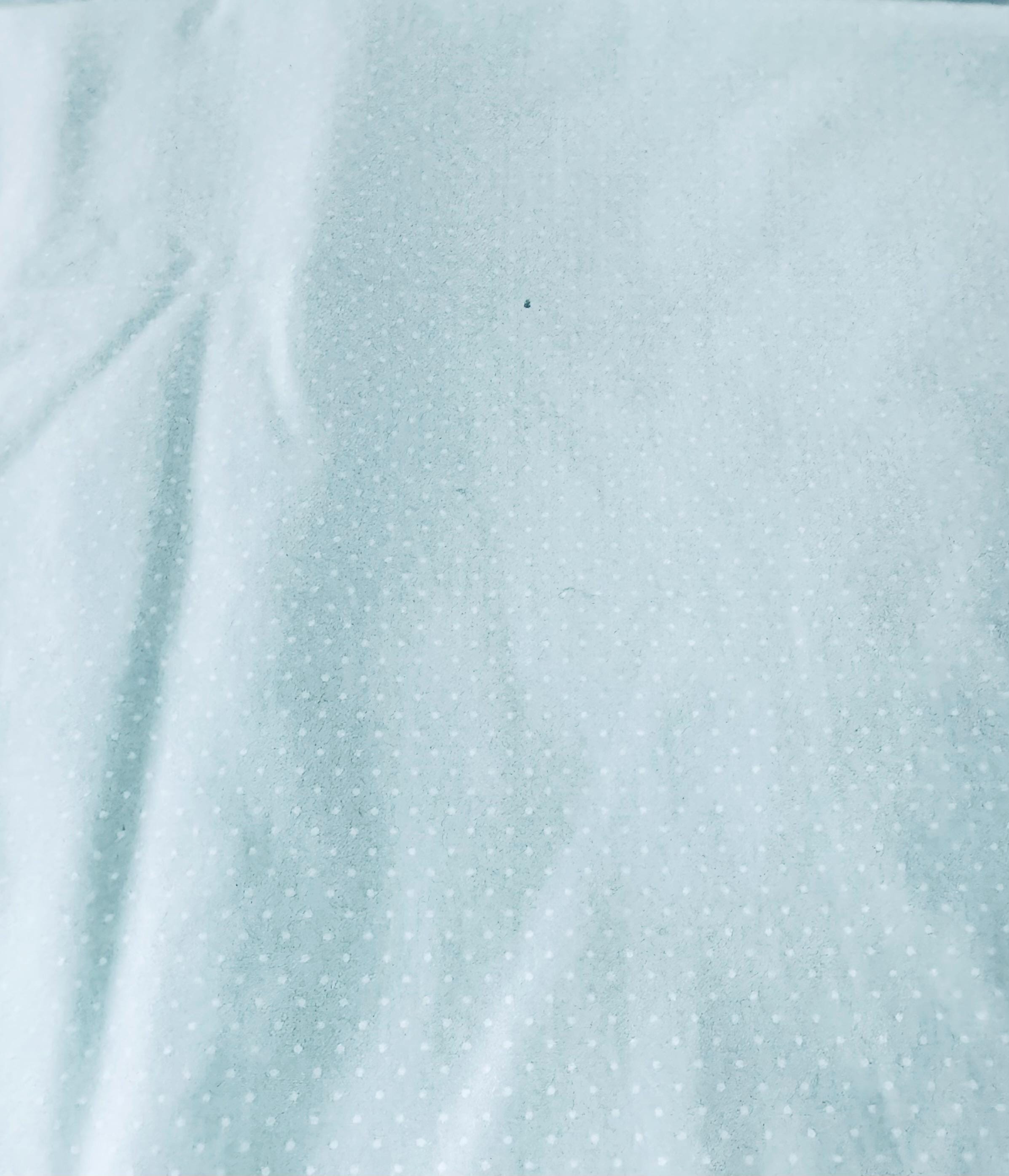 A soft, calming light mint green cotton fabric featuring subtle tiny white dots. Perfect for quilt backgrounds, baby quilts, borders, appliqué, pillowcases, and craft projects. Its gentle pastel tone blends beautifully with florals, kids’ prints, spring palettes, and modern quilts.