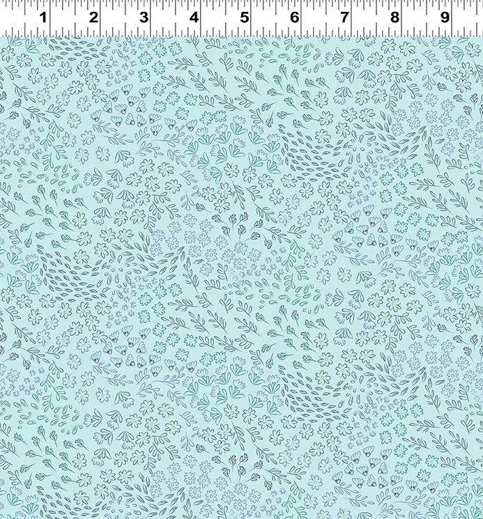 This digitally printed collection features storybook-inspired designs, gentle florals, and playful geese in a soothing palette of royal blue, aqua, green, and soft multi-color accents.