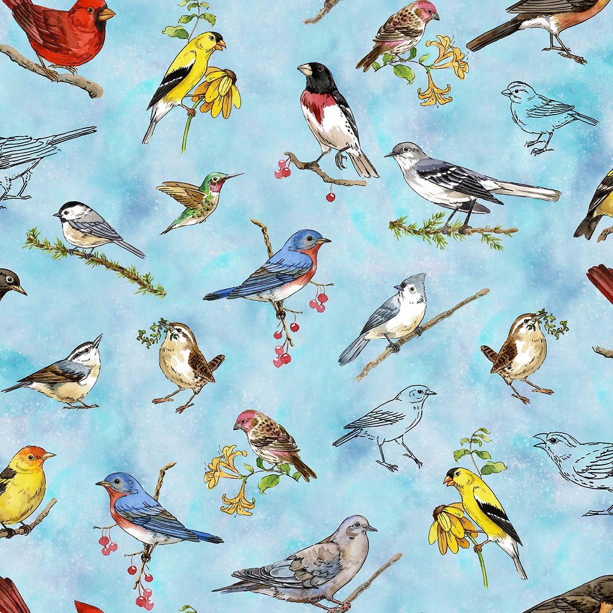 Designed by renowned artist Jane Maday, this collection features softly watercolored and sketched renderings of beloved backyard birds. The artwork feels like pages from a nature journal, creating a quilt that is both calming and beautifully detailed.