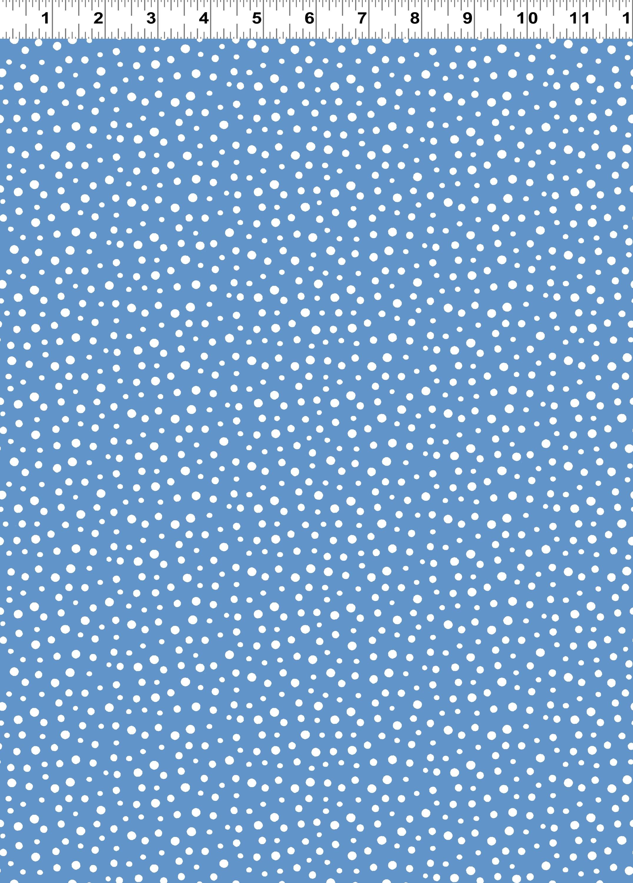 SB20171-740 - Medium Blue: A calming medium blue background sprinkled with playful irregular dots, adding a fresh, versatile touch to quilts, apparel, or accessories.